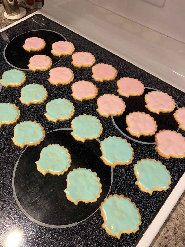On week number eight I was still feeling excited from my previous creation. I found an inspiration photo on Pinterest to help guide my way for this week, the goal to was make flower shaped sugar cookies. I ran my first poll using my blog itself by asking my readers what they thought my week nine sugar cookies were going to be. This week I made the most batches of icing throughout all ten weeks due to the fact that I needed different textures and thickness, I used a recipe off of TikTok to help me with the process. I also discovered a YouTube video to help guide my flooding and decorating technique. The resources I used on week eight were: